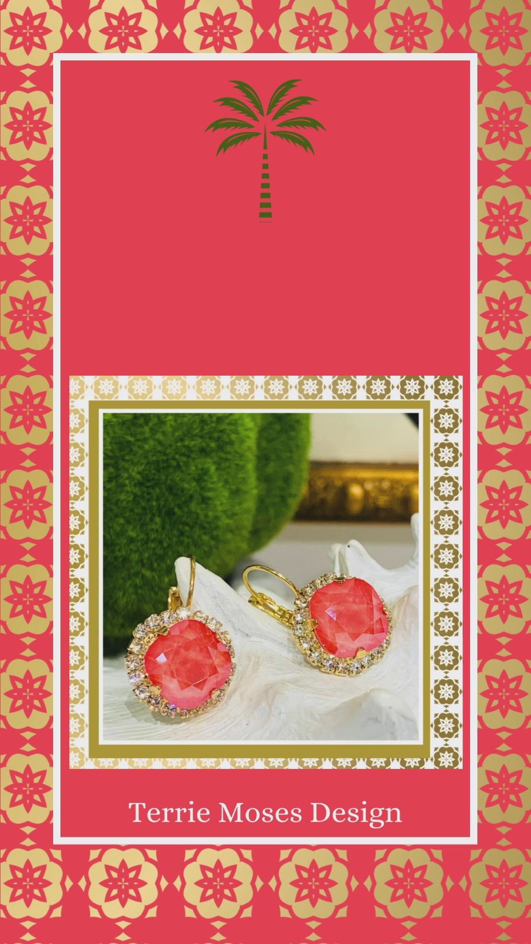 Coral Color Crystal Round Earrings With Crystal Rhinestones Lever Back Gold Plated Drop Earrings